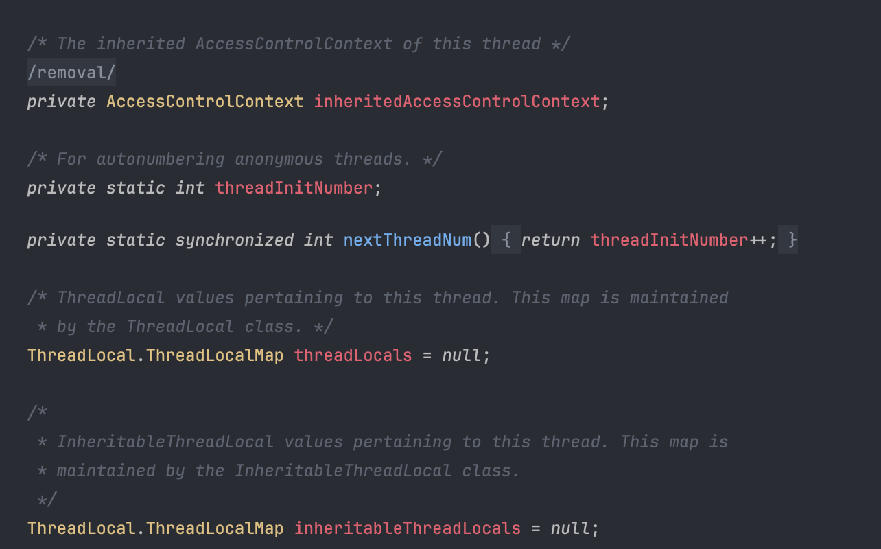 private static ThreadLocal<Integer> threadLocalCount = ThreadLocal.withInitial(() -> 0);