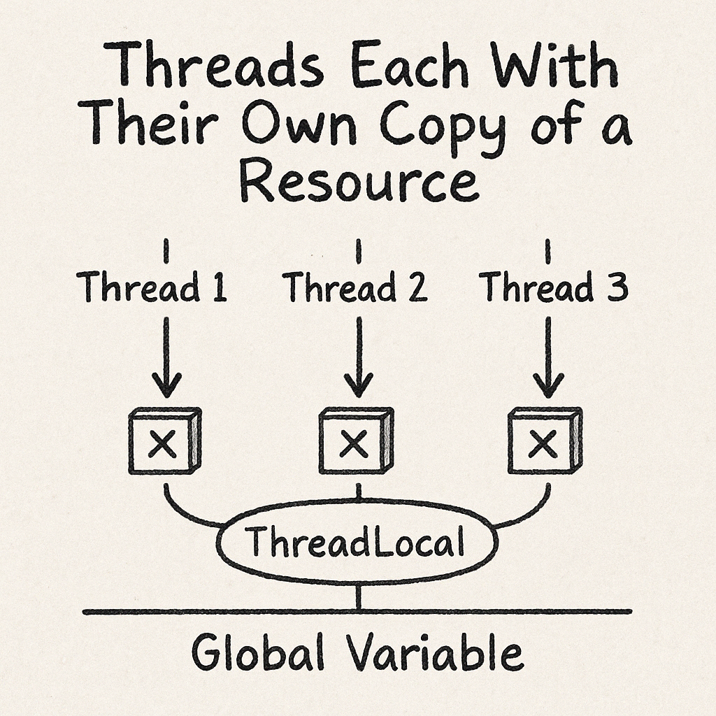 정리하자면, 멀티스레드 프로그래밍에서 공유 자원을 안전하게 다루는 건 매우 중요하고 어렵다. 전통적으로는 락(Lock)을 사용하지만, 자원이 많을수록 복잡도가 상승한다. 반면, ThreadLocal은 “애초에 스레드 간 공유 자체를 없앤다”는 아이디어로, 동시성 문제를 획기적으로 줄여주는 기법이다.