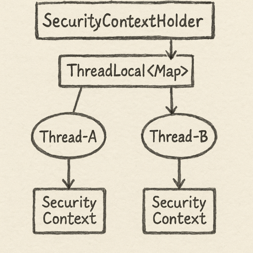 정리해보면, 스프링 시큐리티는 멀티스레드 기반 서블릿 환경에서 ThreadLocal을 사용해, “전역처럼 보이면서도 요청마다/스레드마다 분리된 보안 컨텍스트”를 제공해주는 게 핵심이다.