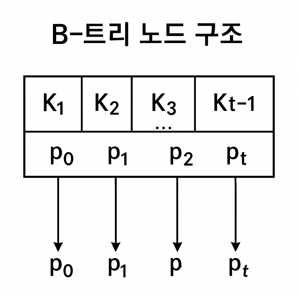 예를 들어, 키가[K1, K2, ..., Kt-1]가 있다면,p0는 K1보다 작은 값들을 가진 서브트리를 가리킨다.p1는 K1과 K2 사이 범위의 값들을 가진 서브트리를 가리킨다.- ...