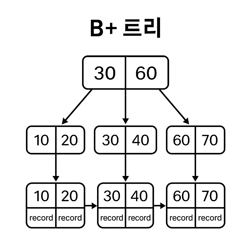 - B-트리는 트리의 리프 노드들이 연결 리스트 형태로 연결되어 있어, 범위 조회와 같은 순차적인 데이터 접근이 매우 효율적이다.