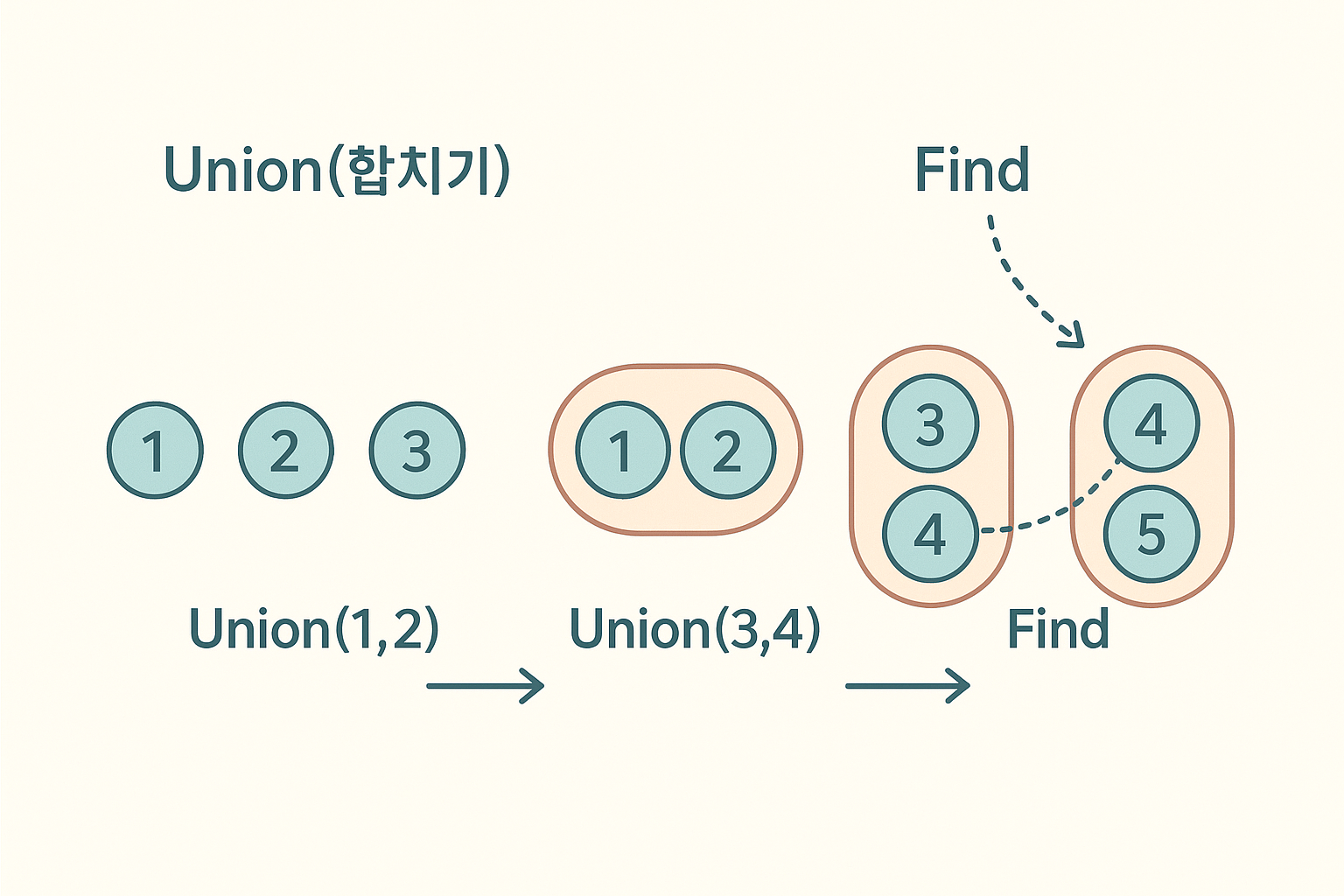 “어떤 원소들이 서로 같은 집합(그룹)에 속해 있는지, 아닌지를 빠르게 파악하고, 필요하다면 두 집합을 하나로 합치는(Union) 연산을 효율적으로 수행할 수 있게 해주는 자료구조.”