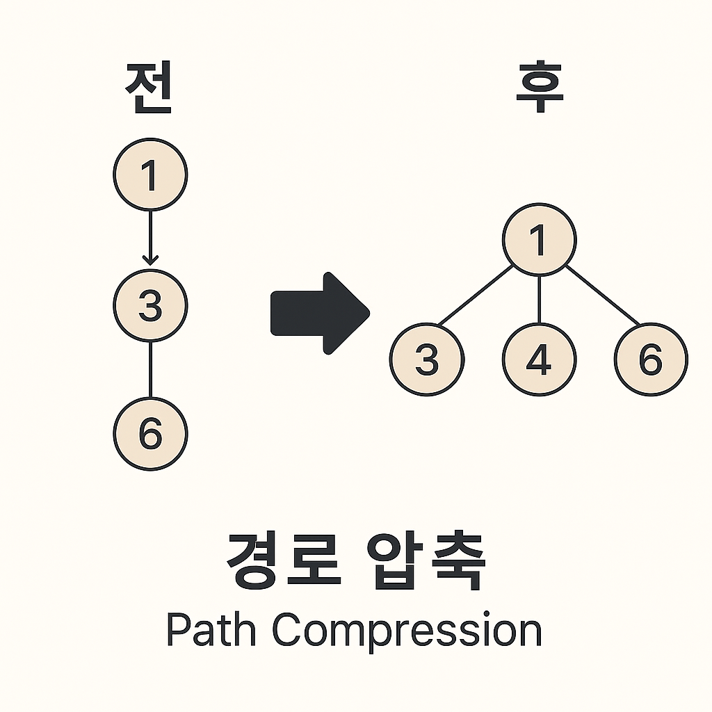 parent[x]를 바로 루트로 갱신하는 경로 압축(Path Compression) 이 이루어진다. - 결과적으로 한 번의