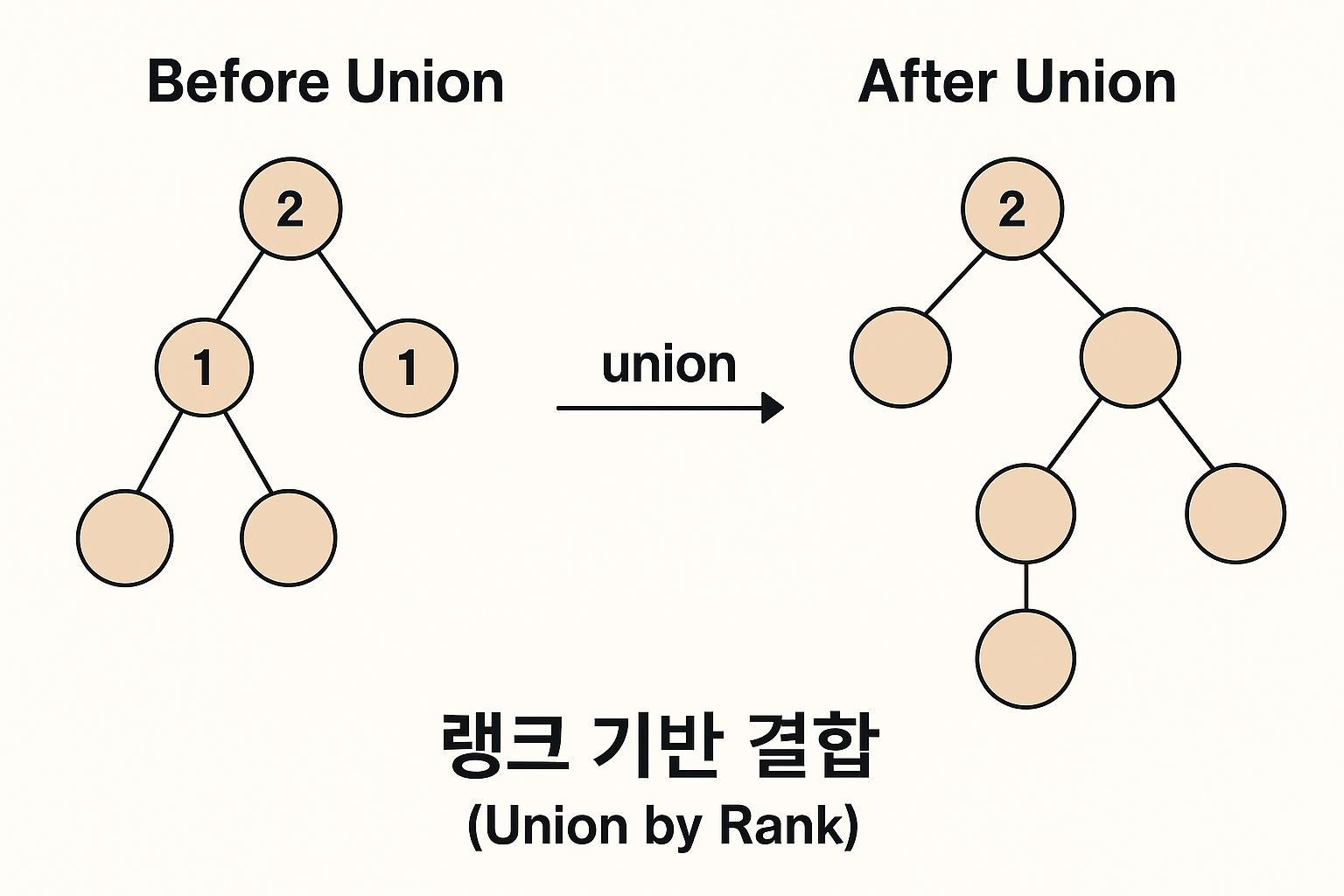 - 두 집합 중 하나의 대표 원소를 다른 집합의 대표 원소에 연결하여 집합을 합친다.
