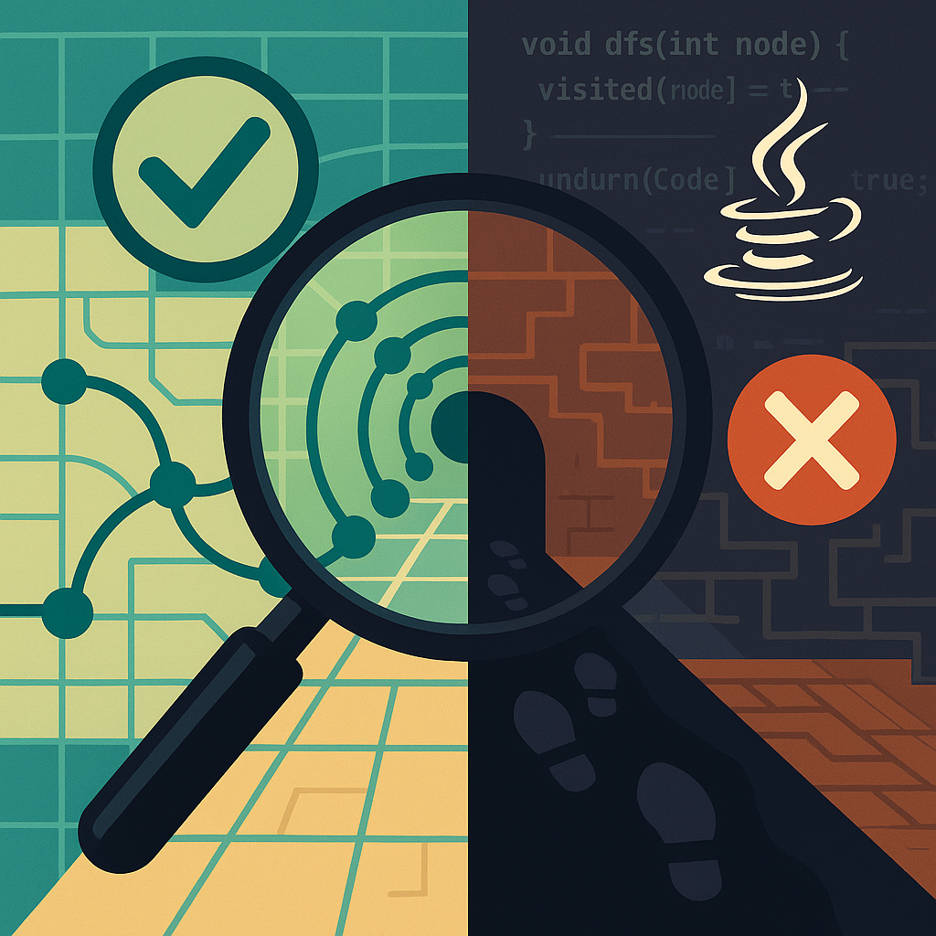 결국, 두 알고리즘 모두 visited 배열을 통해 방문 여부를 철저히 검사하며 모든 칸을 딱 한 번씩만 들여다보기에, 이론상으로는 실행 시간에 차이가 있을 수 없다.
