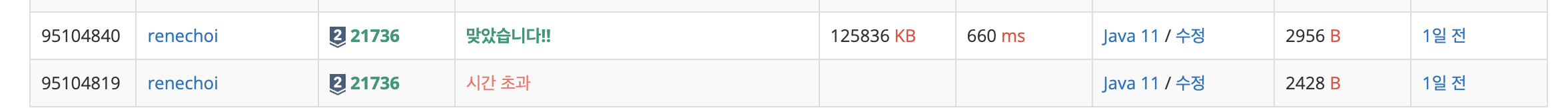 하지만 결과는 완전히 달랐다. BFS는 여유롭게 '통과'라는 판결을 받았지만, 유독 DFS에게는 '시간 초과'라는 냉혹한 판결이 내려졌다.