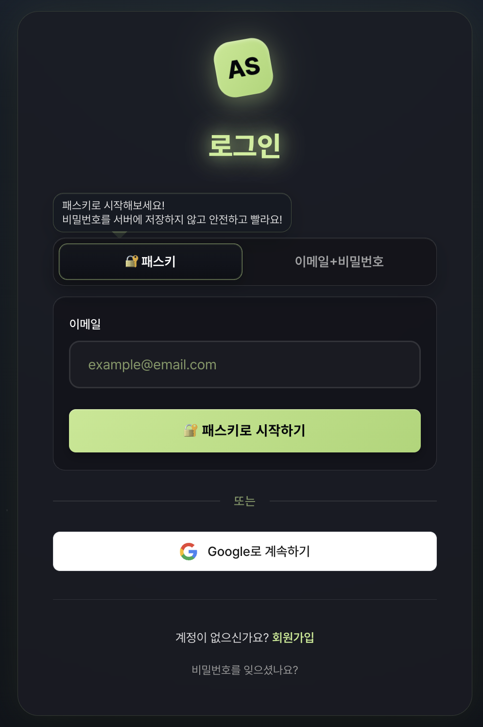 물론 아직 기존의 비밀번호 로그인과 OAuth 2.0(Google) 로그인을 지원하기에 '비밀번호 찾기' 기능이 완전히 사라지진 않았습니다. 하지만 Passkey라는, 비밀번호를 잊어버릴 걱정이 없는 완벽한 대안이 생겼습니다. 이제 '비밀번호 찾기'는 점차 사용 빈도가 줄어들, 언젠가는 사라질 '레거시(legacy)' 기능이 된 셈입니다.