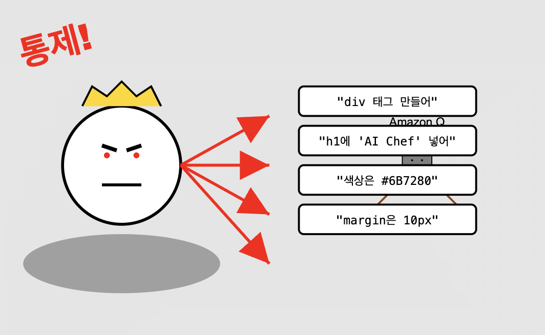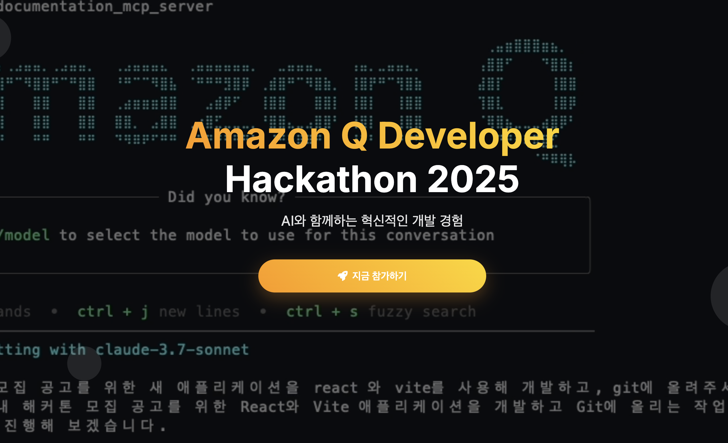 나름 자신감에 차 있었다. AI-Native를 외치던 우리에게 AI와 함께하는 개발은 꽤나 익숙한 일상이었기 때문이다. 평소 사용하던 Claude나 Cursor+GPT5처럼, 이번 해커톤의 지정된 동료인 Amazon Q 역시 우리의 비전을 즉시 이해하고 멋진 코드를 척척 내어줄 것이라 기대했다. 이미 머릿속에는 꽤나 그럴듯한 프로토타입까지 그려둔 상태였기도 하고.