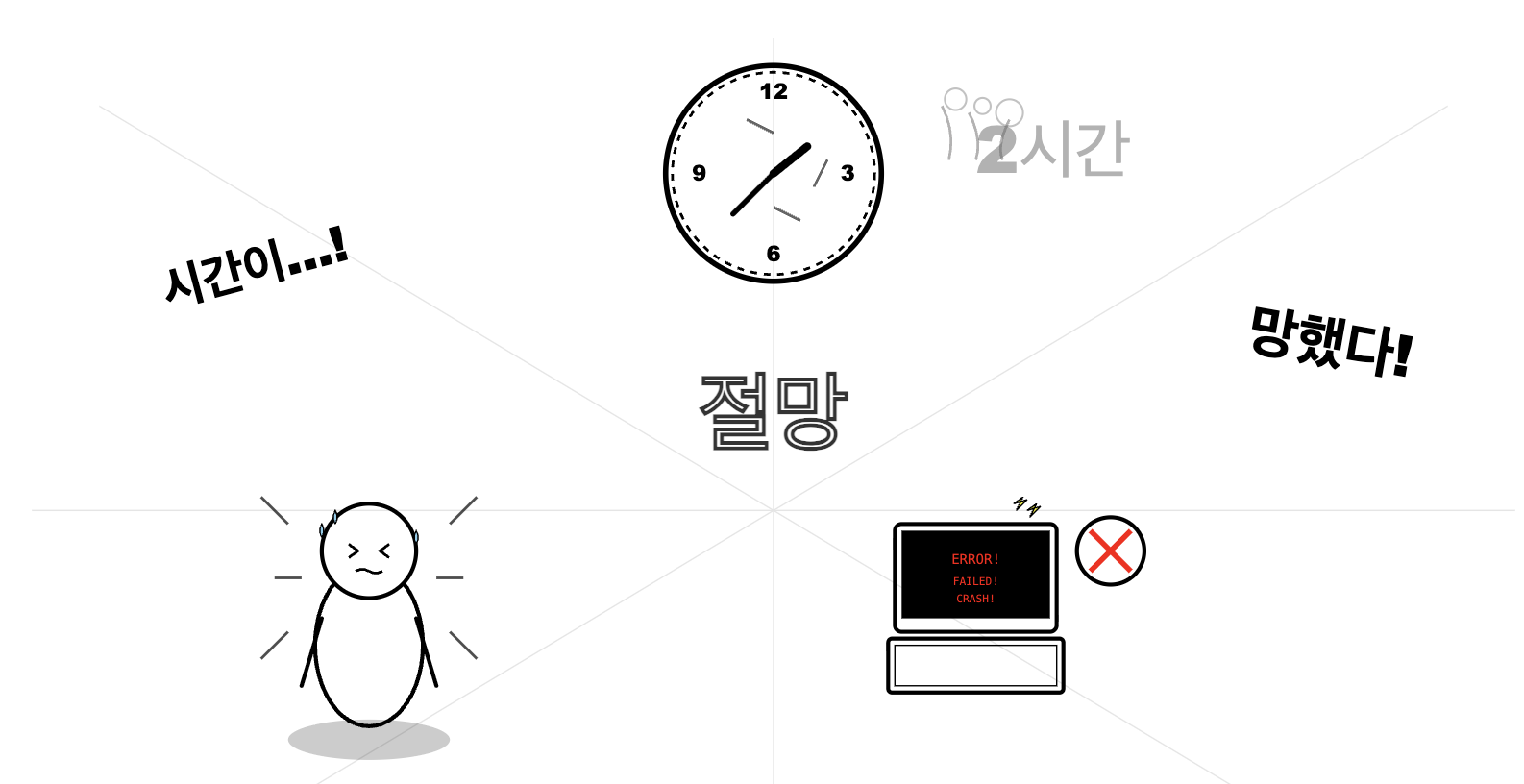 마감 1시간 전. 팀에는 침묵이 흘렀다. 패배감이 공기 중에 무겁게 떠다녔다. 거의 자포자기한 목소리로 말했다.