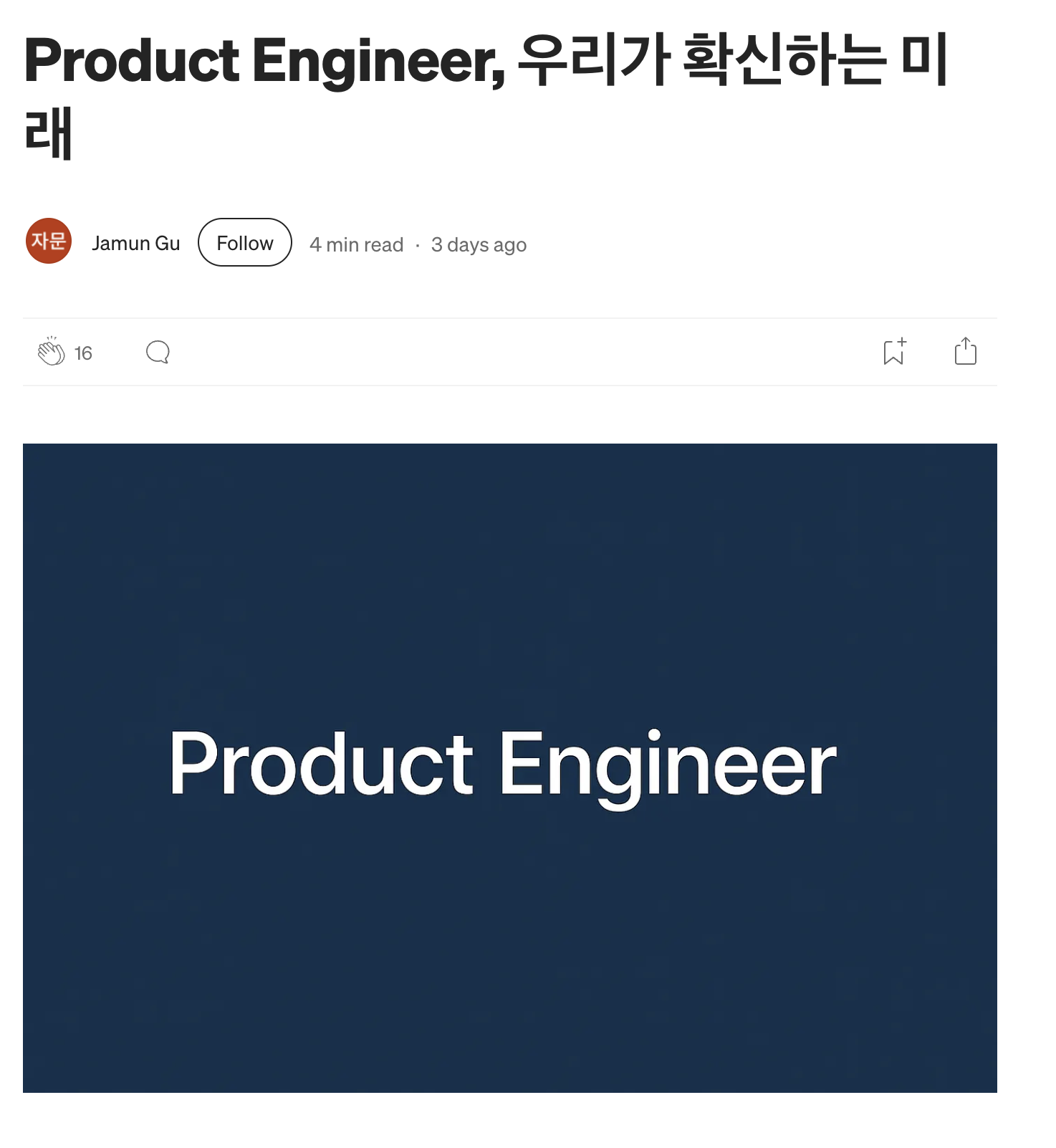 1. 게임의 룰이 달라진다요즘 머릿속에 바이러스처럼 퍼져나가는 두 단어가 있다. 바로 '프로덕트 엔지니어(Product Engineer)'와 'AI-Native' 이다. 이 단어들은 단순히 새로운 기술 트렌드를 넘어, 개발