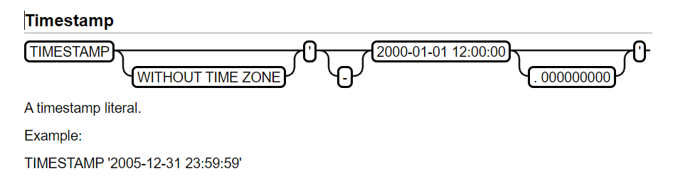 DOB에서 Timestamp 타입을 사용했기 때문에 형식을 어떻게 쓰는지 document를 참고해야 한다.