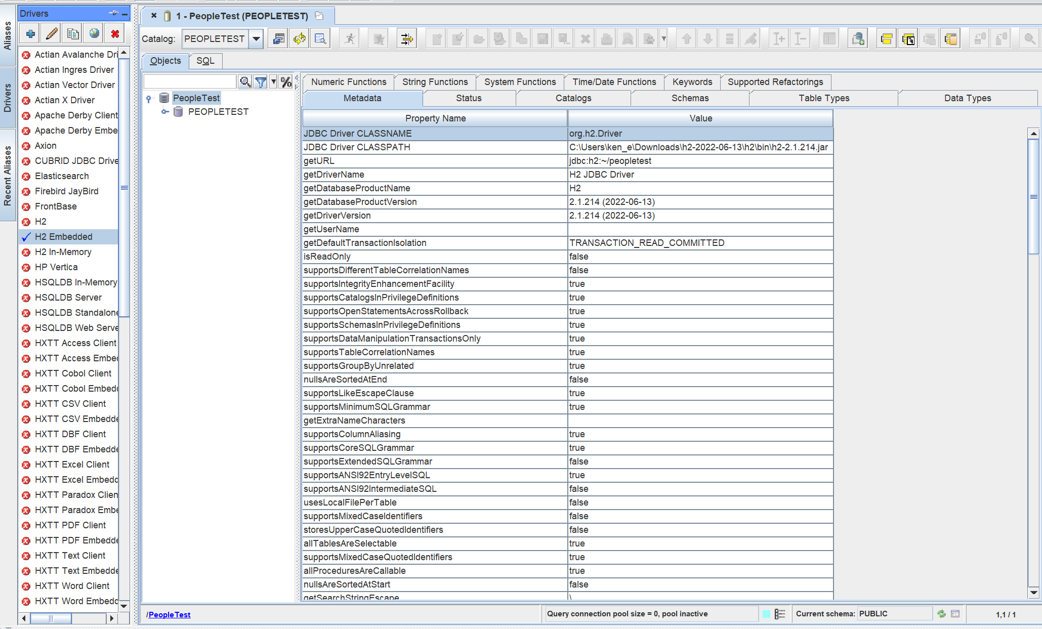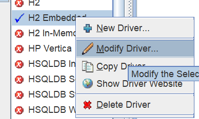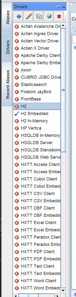 다운로드를 받았으면 SQL로 돌아와서 드라이버 리스트에서 H2 Embedded를 찾는다.