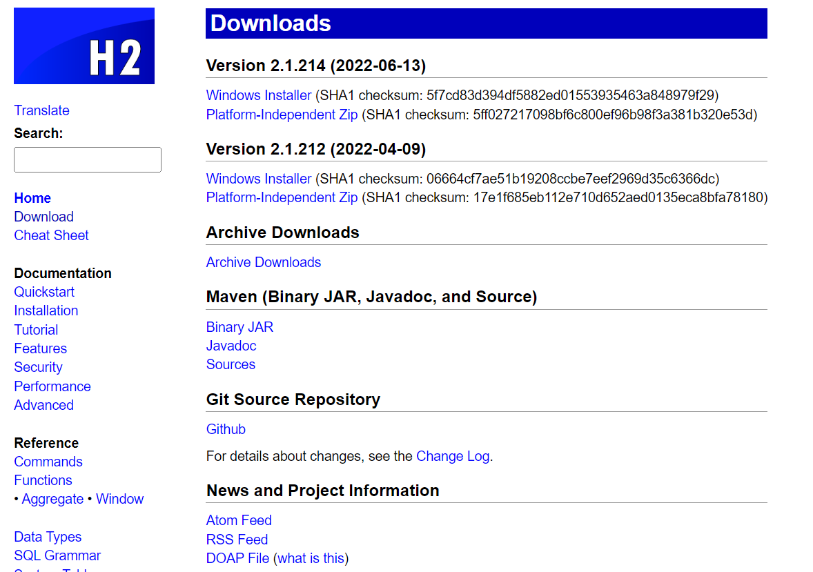 구글 검색하여 h2 아래의 홈페이지에 접속