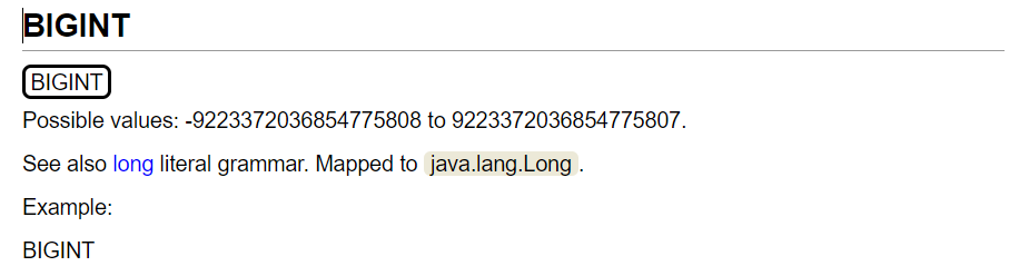 예를들어 BIGINT 같은 경우 자바의 Long에 대응된다는 것을 설명한다.