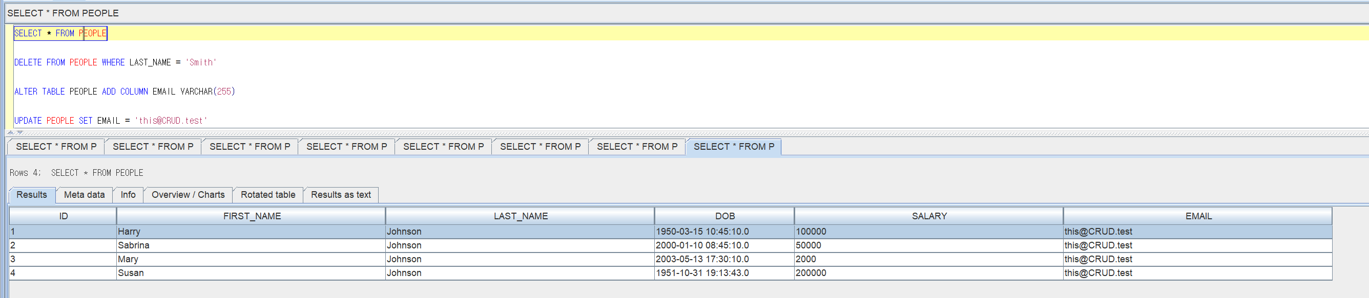 UPDATE PEOPLE SET EMAIL = 'this@CRUD.test'