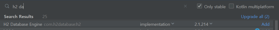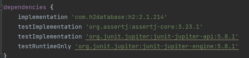 H2 Databata와의 연결성을 위해 Gradle Builder에서 dependency를 추가해주어야 한다.