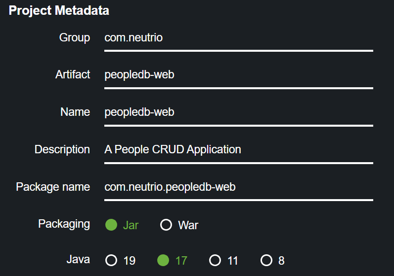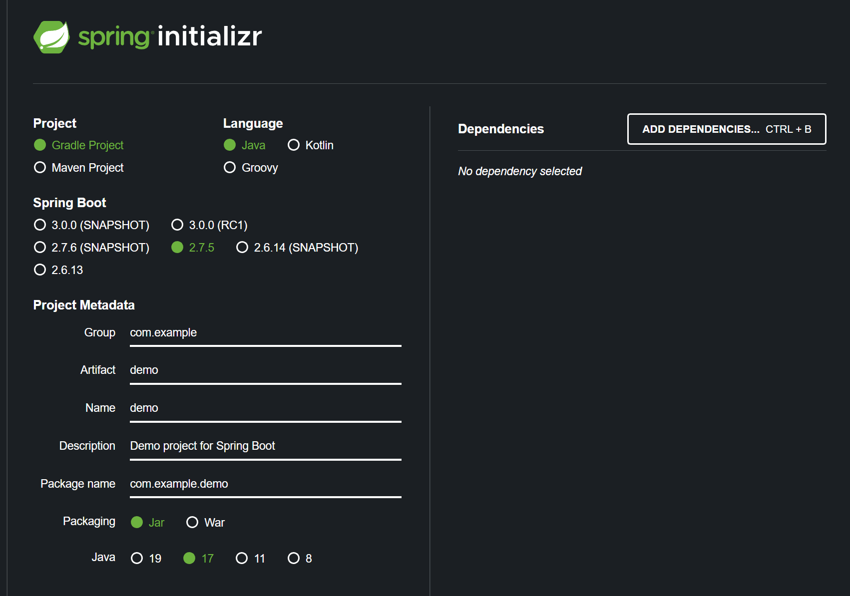 With this littel wizard here, will generate a mostly empty project that contains all of the add on spring framework projects that we need, with providing a downloadable zip file.